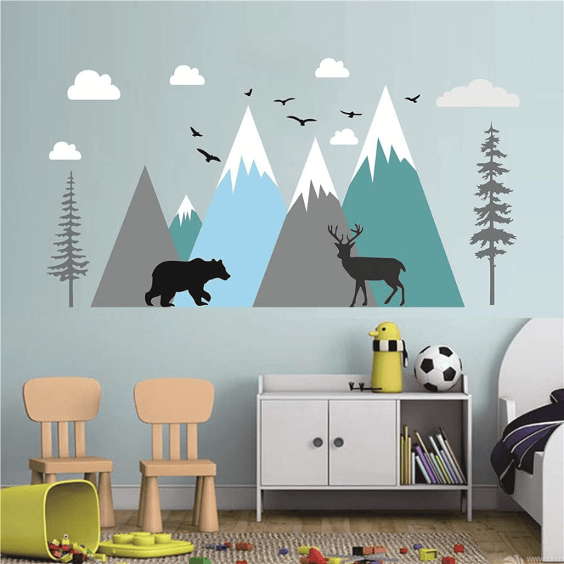 Baby Room Wall Decal – Mountain Tree Adventure Theme